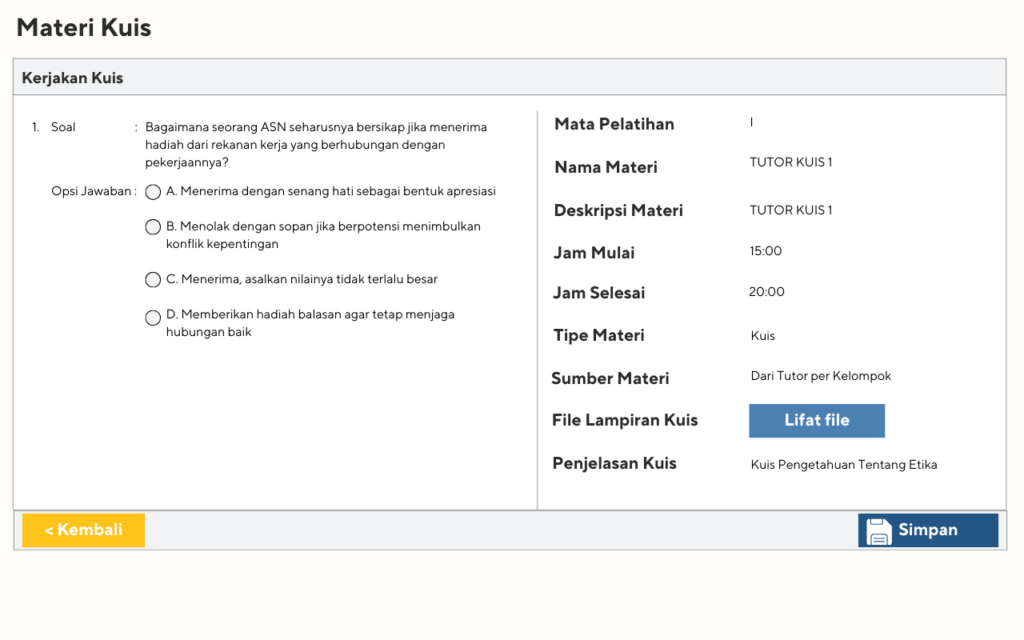 Konten interaktif: video, kuis, studi kasus
